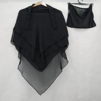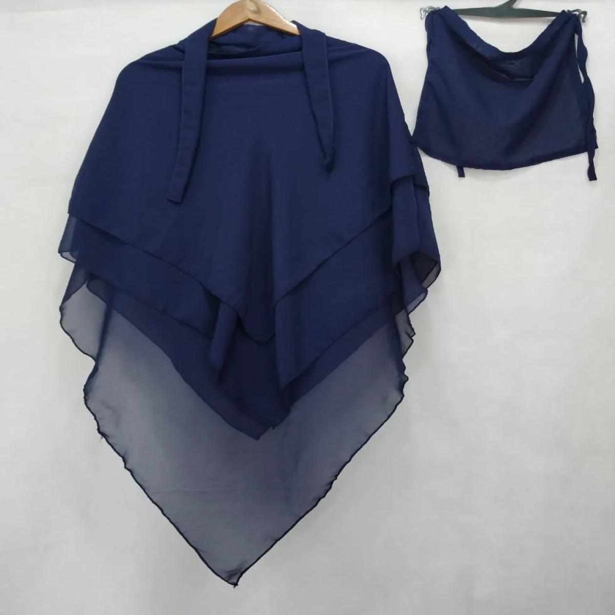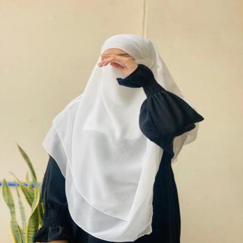 Cover up in this gorgeous large khimar / hijab with tie backs that can be tied over or under the khimar. A soft and lovely triangular shaped, 3-layer khimar that drapes beautifully at the back, giving it that modest, flowy look!